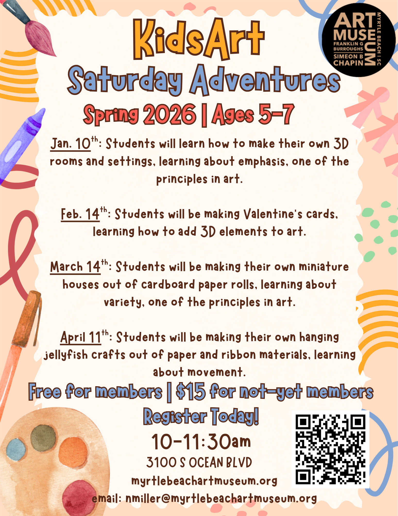 For any questions, contact Nikkole Miller by email nmiller@myrtlebeachartmuseum.