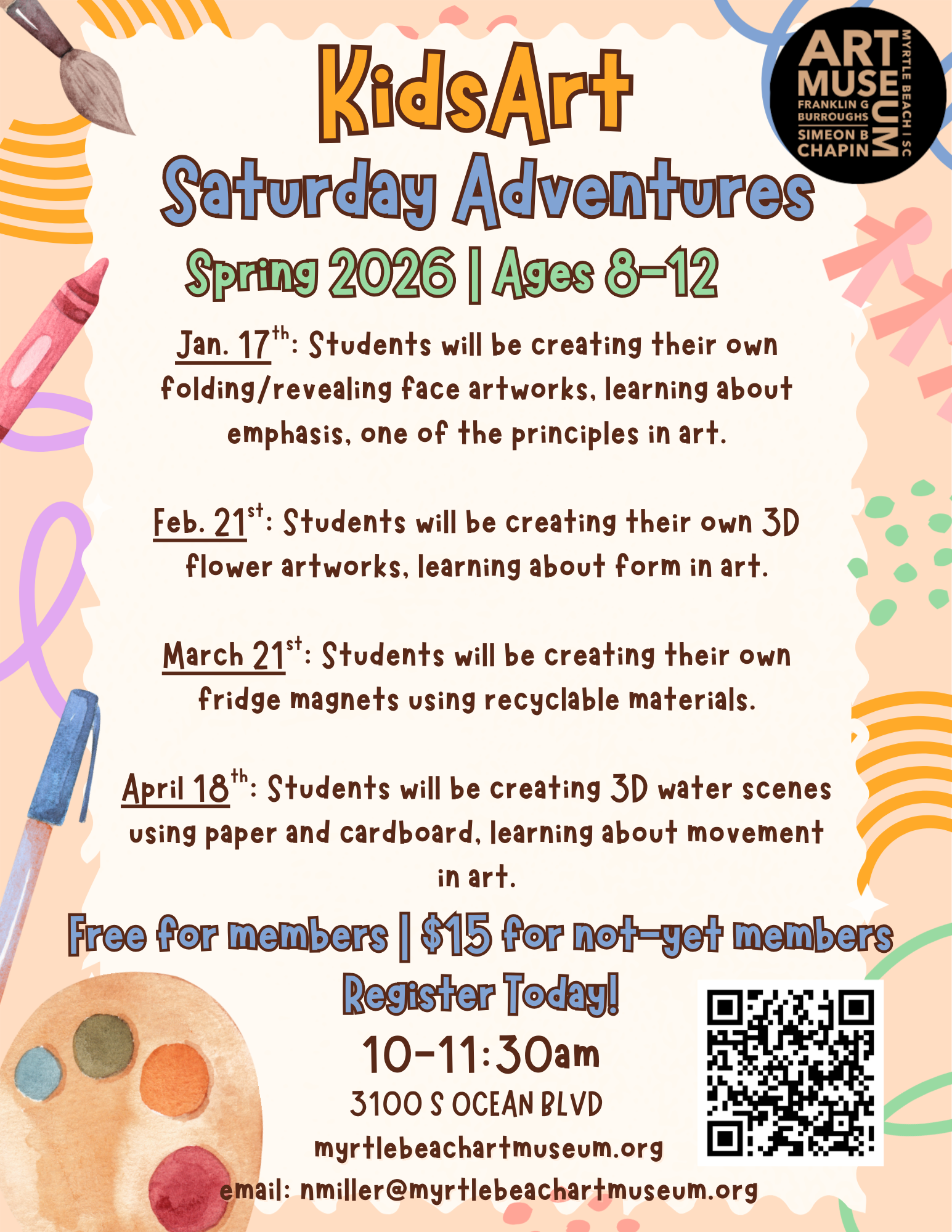 For any questions, contact Nikkole Miller by email nmiller@myrtlebeachartmuseum.